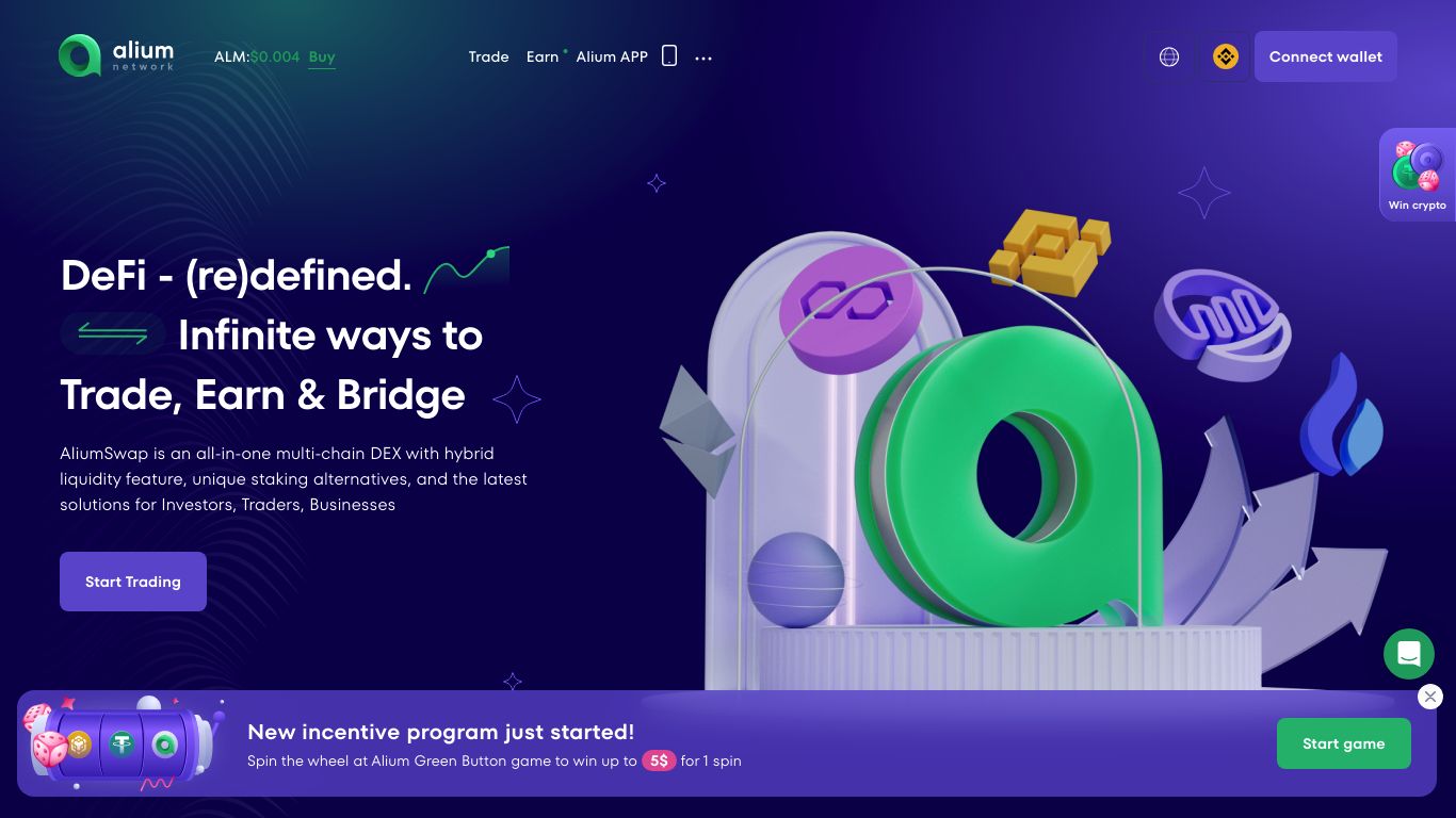 Alium Finance is a multi-chain decentralized exchange (DEX) that leverages a hybrid liquidity model to provide lowest commissions and no liquidity deficit. It uses a hybrid approach that minimizes the need for liquidity by focusing on a few key pairs, which enhances the efficiency and speed of cross-chain swaps.