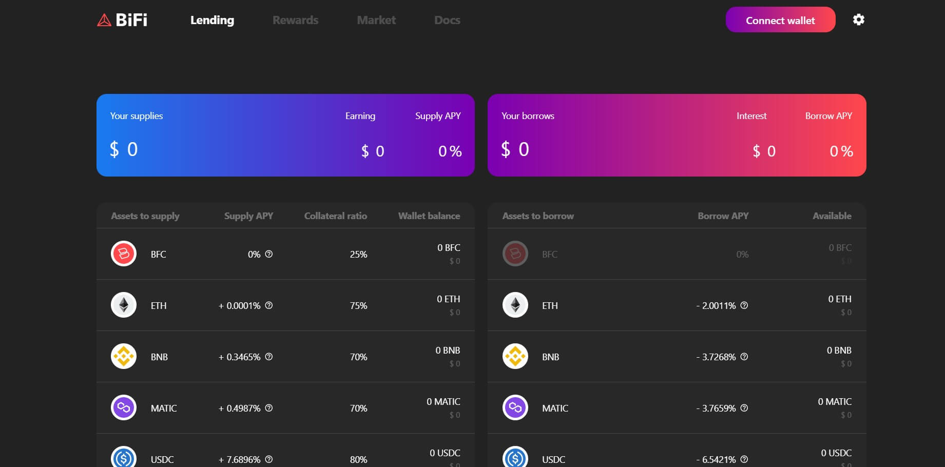 BiFi (Bifrost Finance) is a DeFi platform that allows users to supply and borrow assets like ETH, USDC, BNB, MATIC, and USDT across different blockchains without needing wrapped tokens.