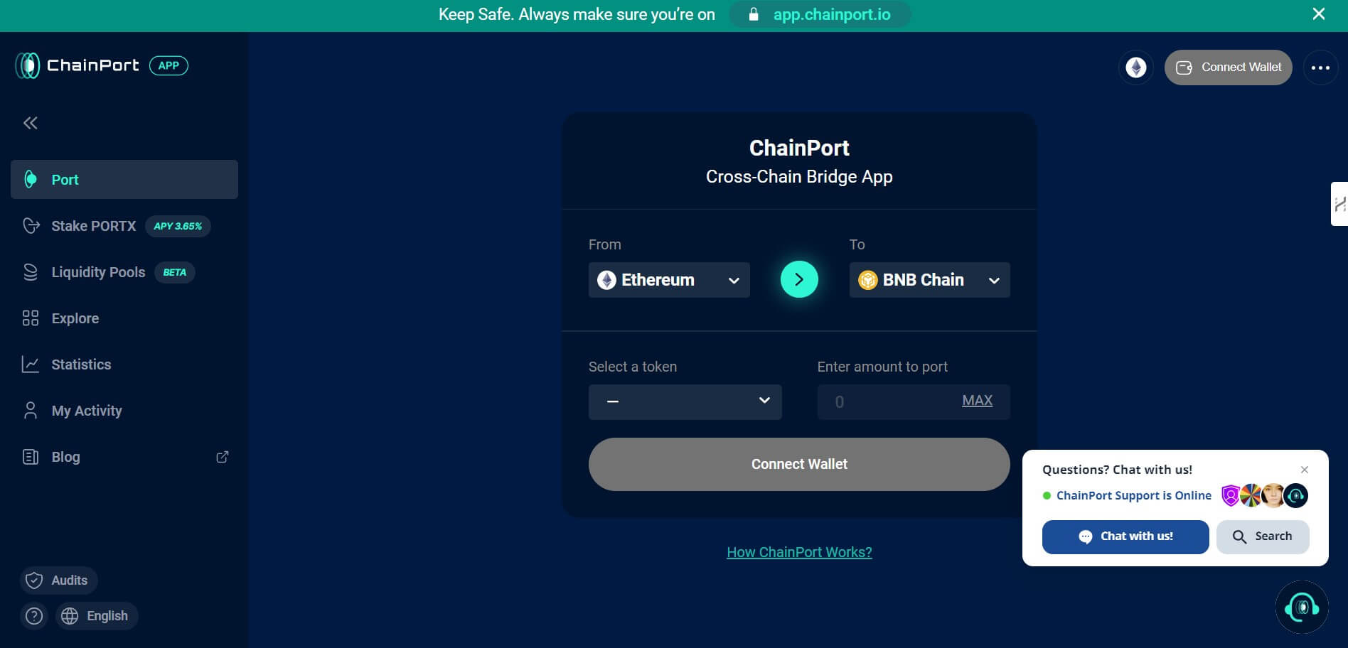 ChainPort is a cross-chain bridge that facilitates the secure and fast transfer of tokens across various blockchains. It supports over 20 mainnets, including popular ones like Ethereum, BNB, and Avalanche. The primary function of ChainPort is to enable users to move their digital assets between different blockchains efficiently, typically within an estimated porting time of 2 to 4 minutes.