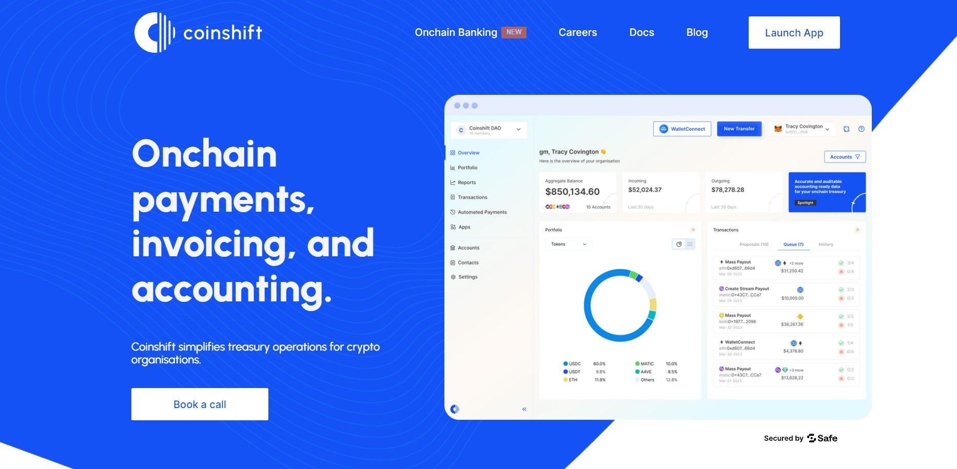Coinshift is a comprehensive treasury management application tailored for DAOs and crypto-related companies. It's designed to facilitate efficient management of crypto assets across multiple blockchains using a secure, non-custodial approach.