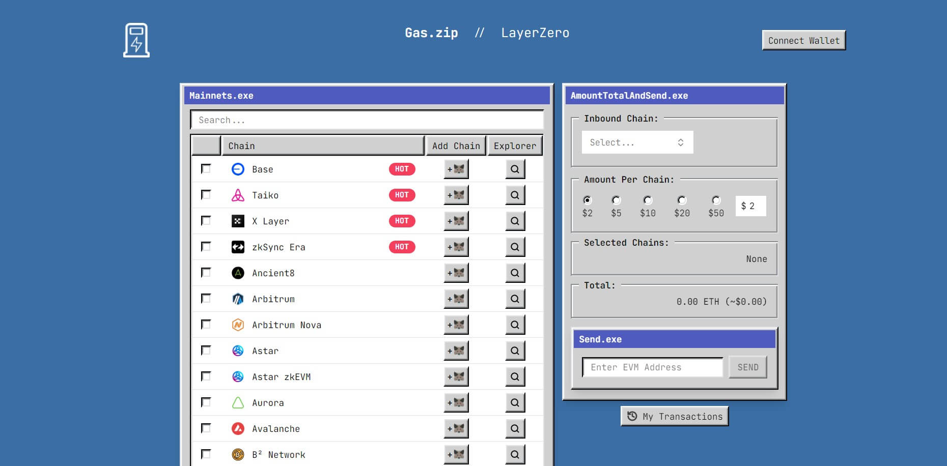 Gas Zip is a gas refuel bridge to facilitate the transfer or bridging of small amounts of ETH to multiple chains. Users can initiate a single transaction that can bridge assets to multiple destination blockchains simultaneously.