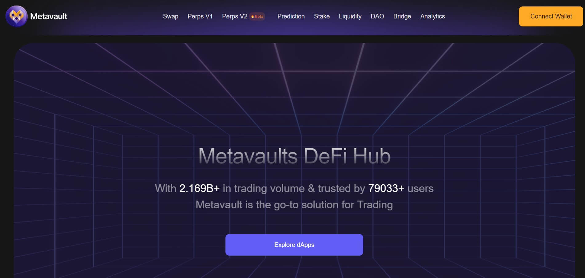 Metavault was a simple decentralized exchange (DEX) that has been upgraded as a comprehensive DeFi Hub offering various services and products under one roof. It provides access to all of their products and those of their partners through a single interface with a state-of-the-art user experience (UX) in an effort to streamline the DeFi user experience and improve the accessibility of its services. Users can access various features like Spot and Perp DEX, DAO, gaming hub, and more across different chains through Metavault.