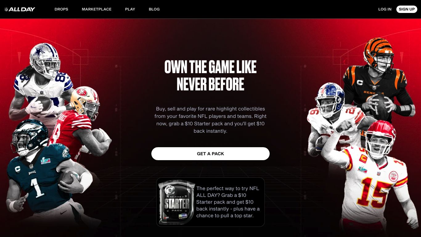 NFL All Day is an NFT marketplace that offers digital collectibles called "Moments" that feature highlight plays from NFL games as unique NFTs. These Moments can be purchased in pack drops, similar to trading card packs, and owned, traded, or sold on the NFL All Day marketplace. The platform also includes interactive challenges and tasks that engage users and offer rewards for collecting specific Moments.