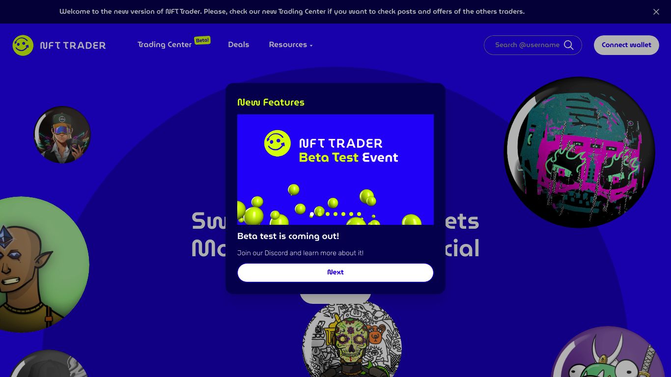 NFT Trader is a platform specialized in the over-the-counter (OTC) trading of digital collectibles and Non-Fungible Tokens (NFTs). It facilitates secure and straightforward transactions by enabling users to trade baskets of assets, supported by a robust set of tools including a transaction history, order book, and real-time trading data.