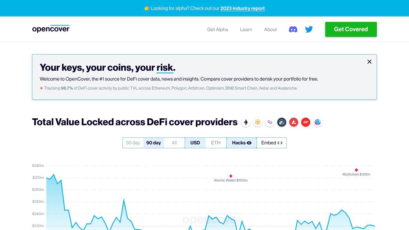 OpenCover is a platform that provides insurance against smart contract hacks, oracle failures, etc. It aims to democratize DeFi insurance by providing standardized and unbiased industry data to mitigate DeFi risks, making it safe and accessible to everyone.
