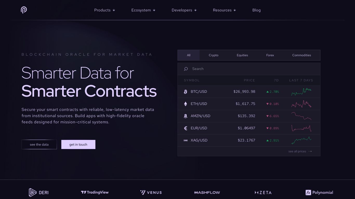 An oracle that aggregates and publishes financial market data to multiple blockchains, with contributions from various exchanges and market-making firms. Provides accurate price feeds for US equities, commodities, and cryptocurrencies.