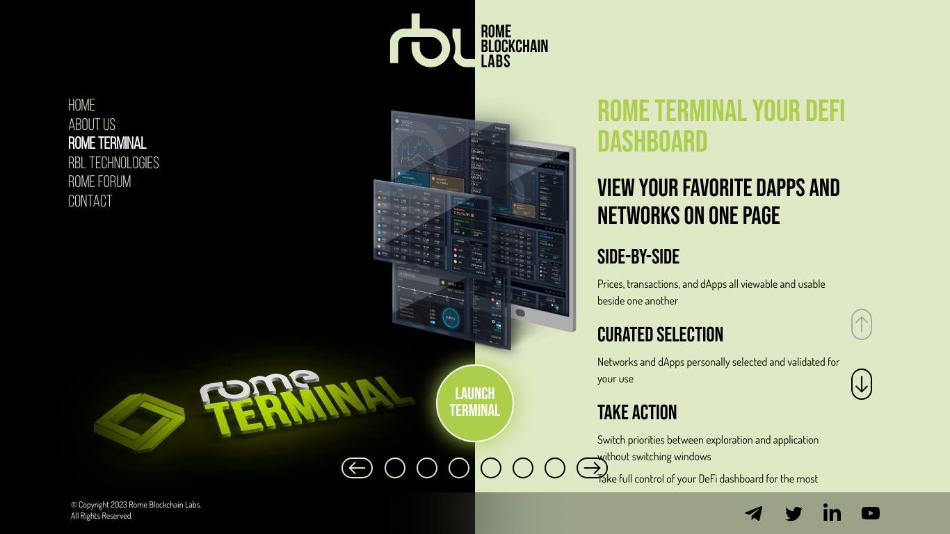 Rome Terminal is _a comprehensive DeFi dashboard that enables users to manage and interact with various decentralized finance applications and networks from a single interface. It provides transaction tables, price charts, and a trader-oriented interface for favorite dApps from DEXs to yield farming all in one page.