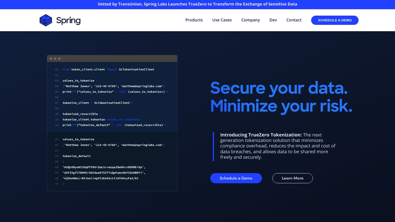 Spring Labs TrueZero ensures the security of sensitive data by using patented, ultra secure cryptography and tokenization solutions. The technology used by Spring Labs protects the data from unauthorized access and ensures that it remains secure during the exchange process.