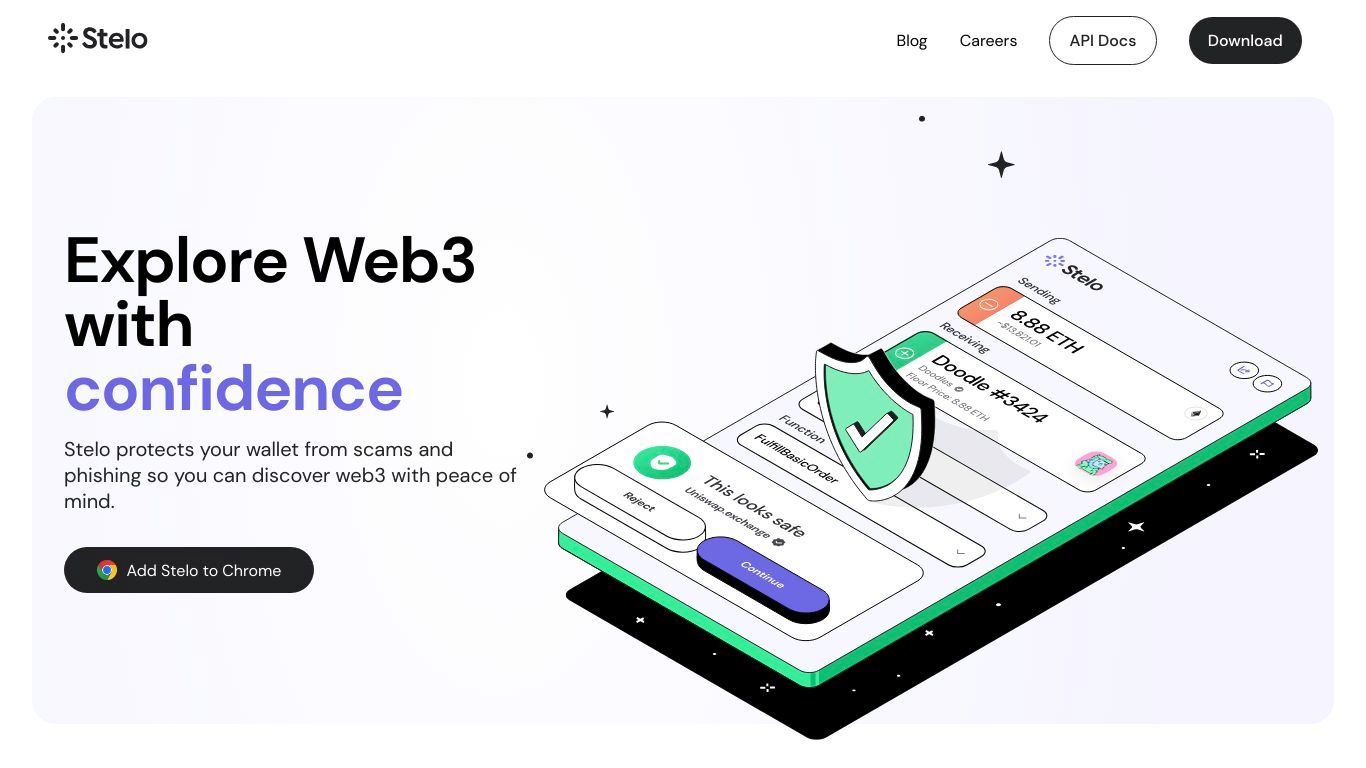 Stelo protects your wallet from scams and phishing by intercepting all your transactions before they reach your wallet. It then simulates the transaction and analyzes the risk to prevent you from getting phished or scammed. Stelo works alongside your favorite wallet and never accesses your seed phrase or private key, ensuring the safety and security of your crypto. Additionally, Stelo's risk engine is used by cutting edge dapps and wallets, providing industry-leading protection.
