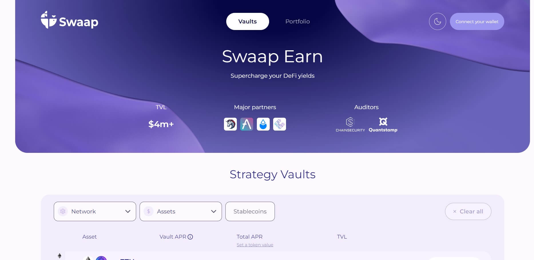 Swaap is a DeFi platform that provides users with earning opportunities through staking and farming. It allows users to lock their assets to earn rewards, supporting various staking pools with different risk and reward profiles.