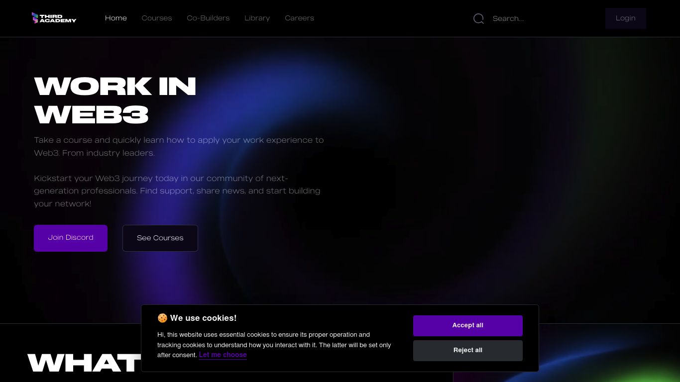Third Academy is a web3 educational platform and career launchpad focused on cohort-based learning. It offers courses designed to teach skills like Web3 community management and marketing, emphasizing real-world application and career readiness. Users can join as co-builders, mentors, and contributors with on-chain accreditation.