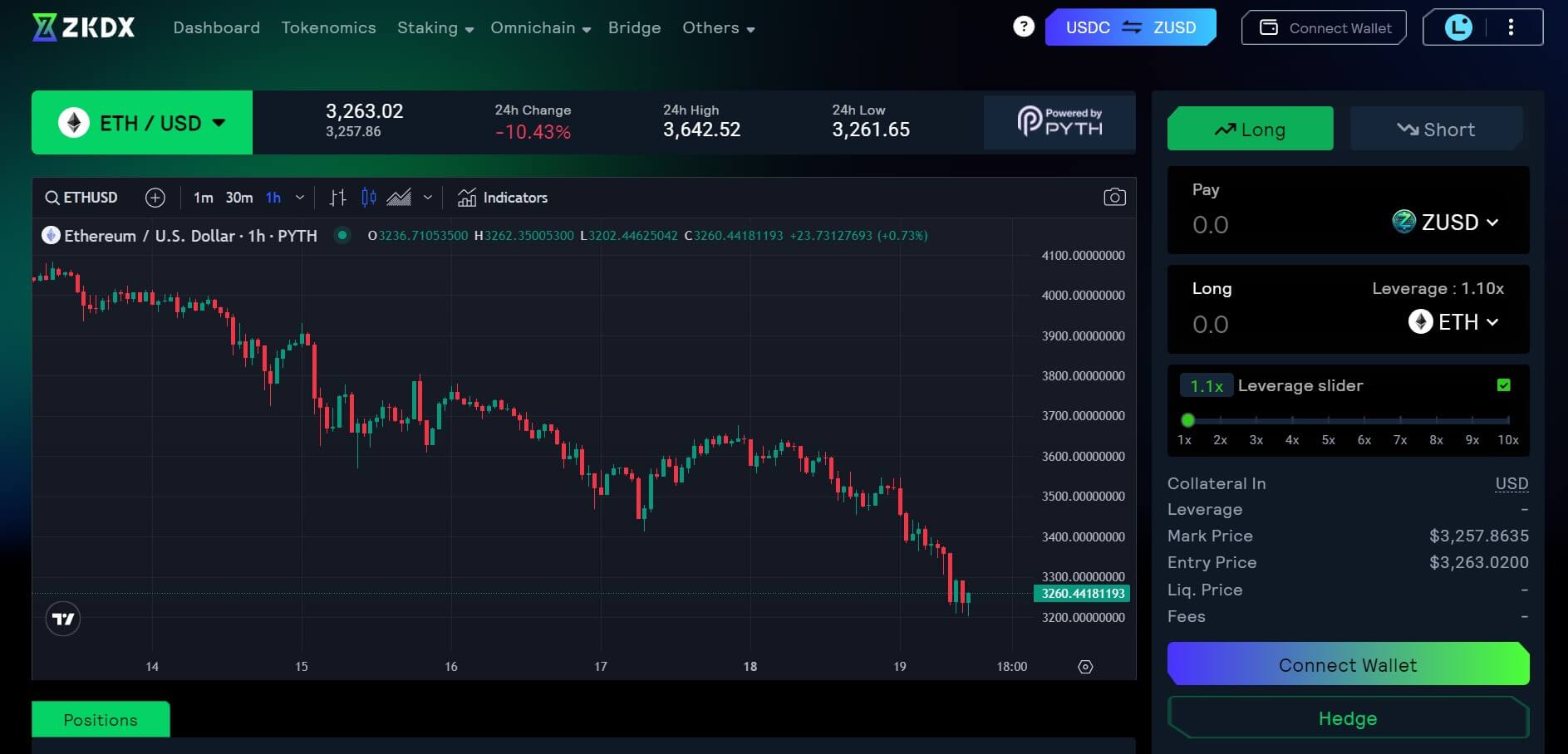 zkDX supports trading in crypto futures, foreign currency, stocks, and various innovative financial derivatives.